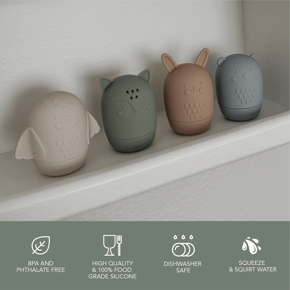 Bath time adventures await with noüka’s Silicone Animal Bath Toys. Squeeze them to fill up with water and squirt for bath time fun. Detachable pieces come apart for easy cleaning and to prevent mold. Made from soft and flexible food grade silicone, our Animal Bath Toys are durable and long-lasting. Both little ones and parents will love the adorable animal shapes.