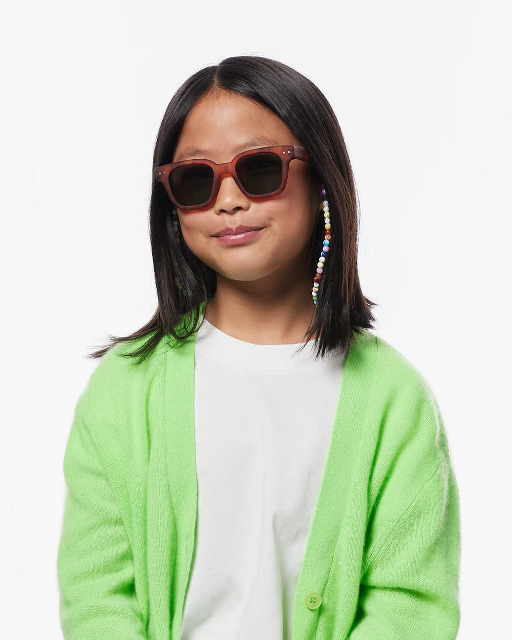 Children's pearl glasses cord: a colorful accessory that can be worn like jewelry. Lightweight and full of pep, it transforms any pair of glasses into a cheerful accessory. Bonus: also available in an adult version for an irresistible “Mini Me” look!