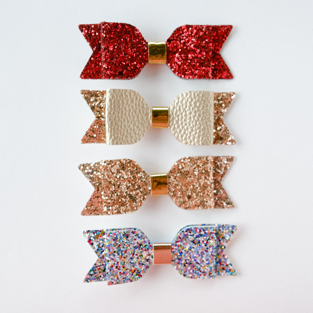 Ajoutez une touche d'éclat au style de votre enfant avec notre ensemble de nœuds à paillettes Sophia Classic. Cette collection éblouissante comprend quatre barrettes au design unique, chacune infusée de paillettes pour une touche de magie et de charme supplémentaire.