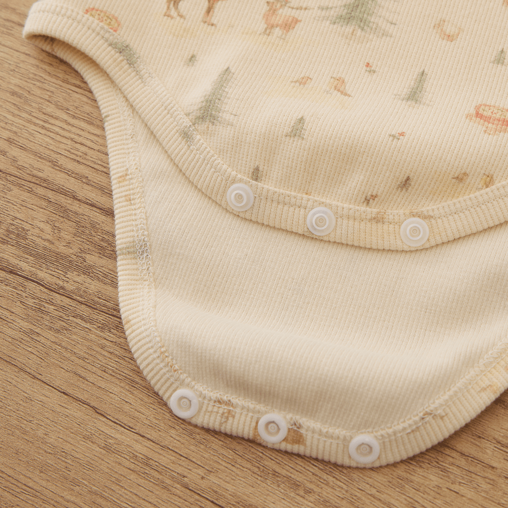 This long-sleeve bodysuit features an envelope neck for easy over-the-head dressing, with strong snap fasteners at the gusset, keep up with repeating to get change and wash.