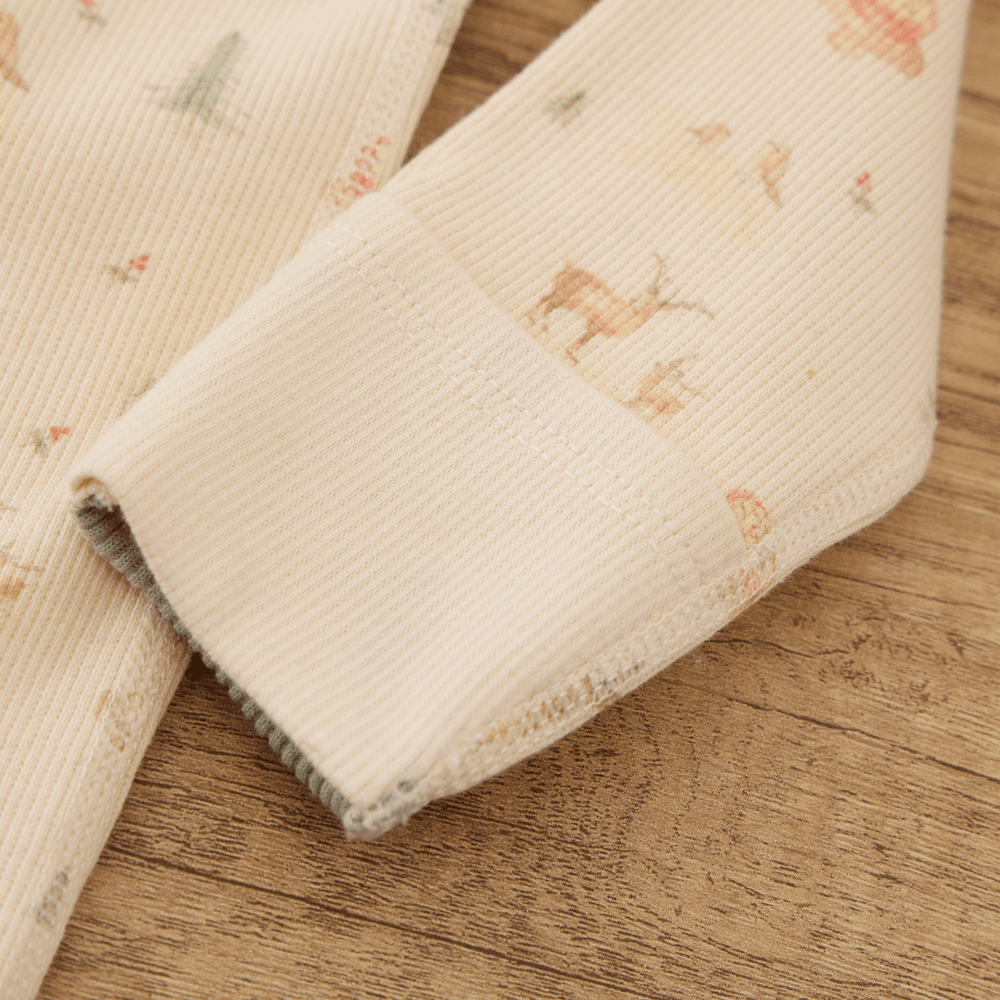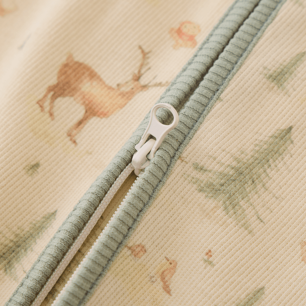 Our signature sleeping romper is designed for ultimate comfort. Featuring footies and a full-length zipper from the center front to the feet, this romper makes bedtime and changing a breeze. The soft, breathable fabric ensures a snug, cozy fit for peaceful sleep.