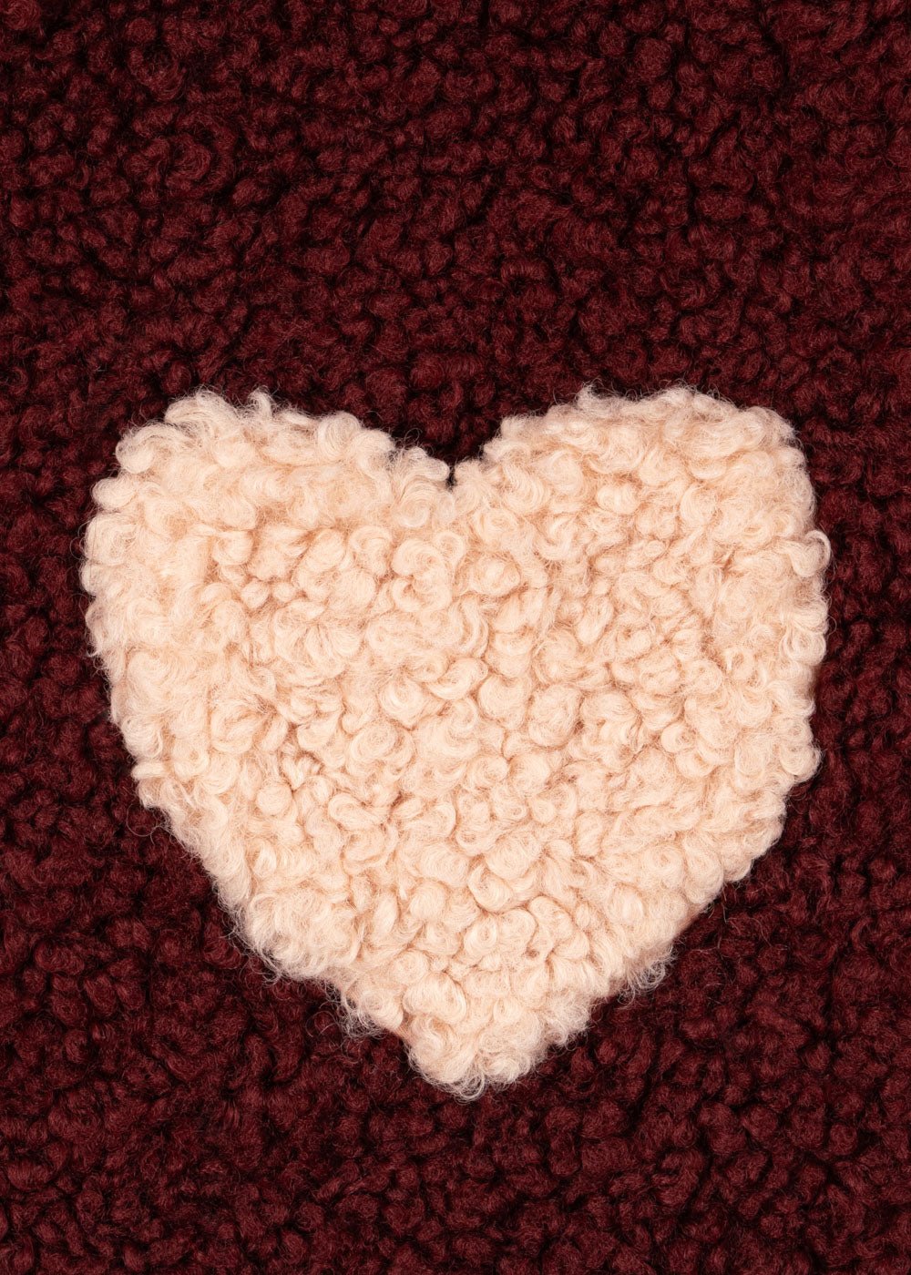 Soft and fluffy coat with a rounded collar, heart-shaped front pockets, and elegant horn buttons in front. Designed with a gentle A-shape silhouette that is flattering and easy to wear.