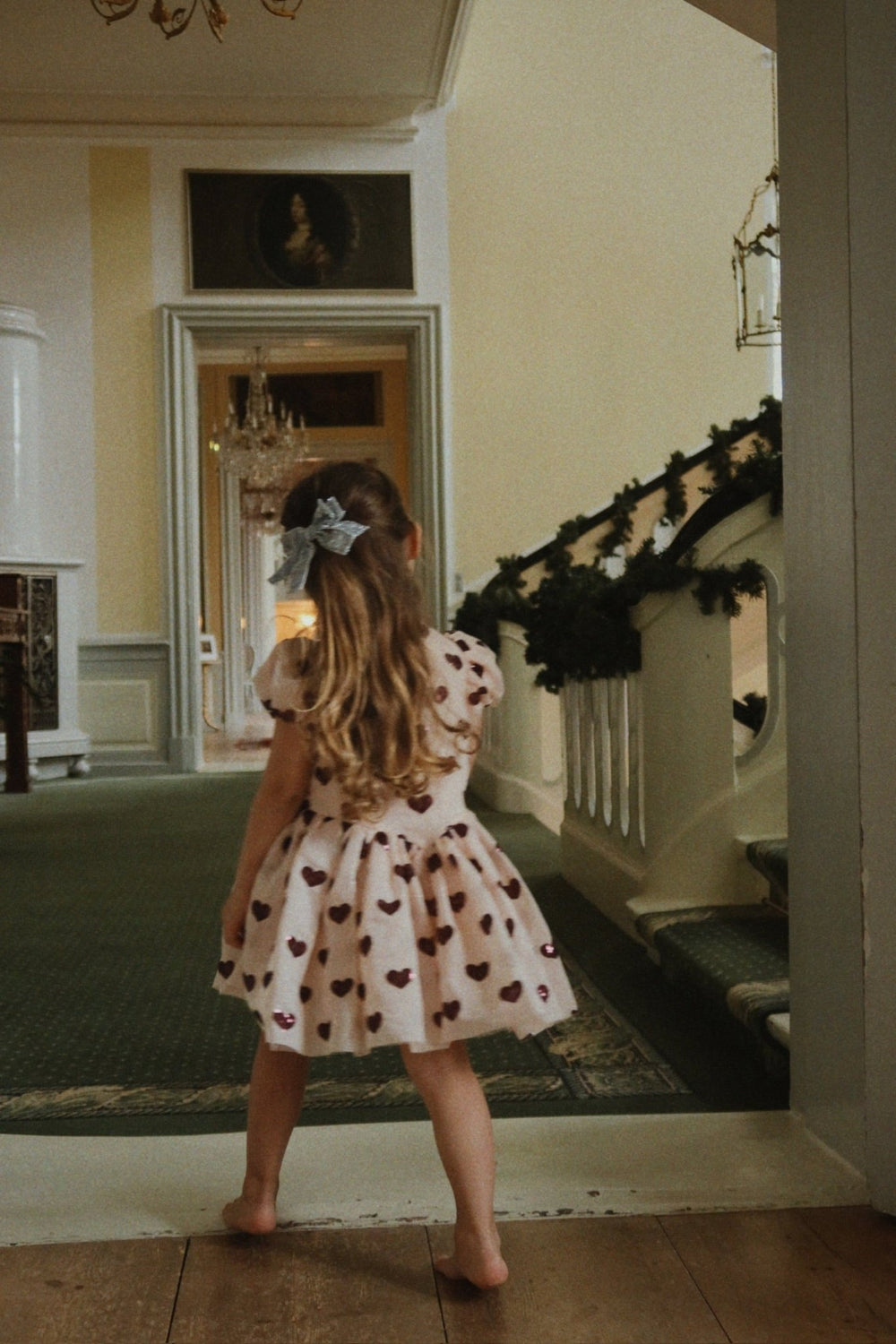 Glitter bow barrette with an easy clip-on feature that makes it easy to wear.