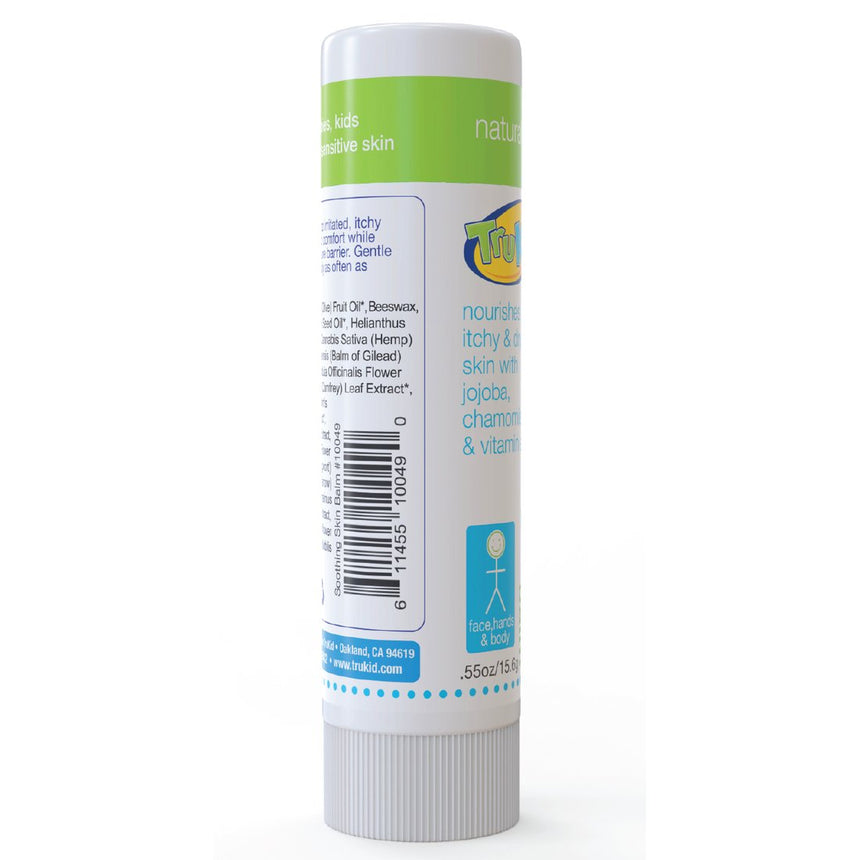 Le Baume Apaisant TruKid est un stick de premiers soins portable qui soulagera rapidement vos enfants ! Assez petit pour tenir dans votre sac à main ou dans le sac à dos de votre enfant, notre Baume Apaisant est un soin anti-eczéma sans stéroïdes, facile à utiliser et à emporter partout. Il offre un confort apaisant pour l'eczéma, la peau sèche, les coupures, les égratignures, les piqûres d'insectes et autres irritations cutanées. Il contient de nombreux ingrédients bénéfiques, dont le Baume de Galaad, le Calendula et la Feuille de Plantain. Le Baume Apaisant TruKid restaure la barrière cutanée naturelle. Notre stick ultra-onctueux s'applique facilement et hydrate le visage et le corps tout en protégeant la peau.